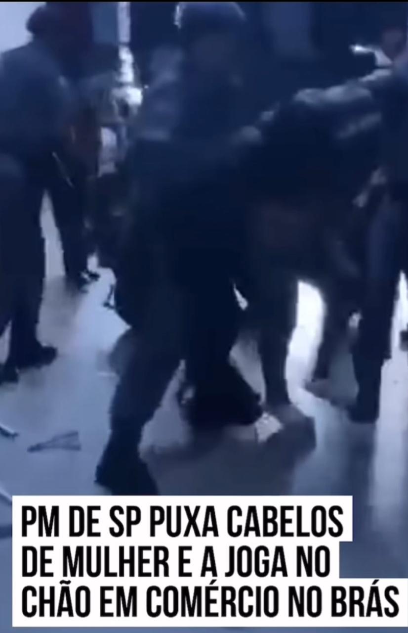 Um vídeo que circula na redes sociais mostra um policial militar agredindo uma mulher com um puxão de cabelo em um comércio na Rua Conselheiro Belisário, no Brás, região central de São Paulo, na tarde desta terça-feira (21/10). A força aplicada fez com que ela caísse no chão.