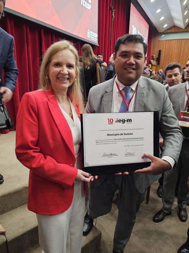 A Prefeitura de Suzano foi uma das 25 administrações municipais paulistas homenageadas pelo Tribunal de Contas do Estado de São Paulo (TCE-SP) pelo desempenho efetivo na gestão pública, com base nos resultados do Índice de Efetividade da Gestão Municipal (IEG-M) referentes ao exercício de 2024. O reconhecimento foi entregue nesta segunda-feira (13/10), durante o evento de celebração dos dez anos desta ferramenta, realizado no Auditório Nobre Professor José Luiz de Anhaia Mello, na sede do TCE-SP, na capital.