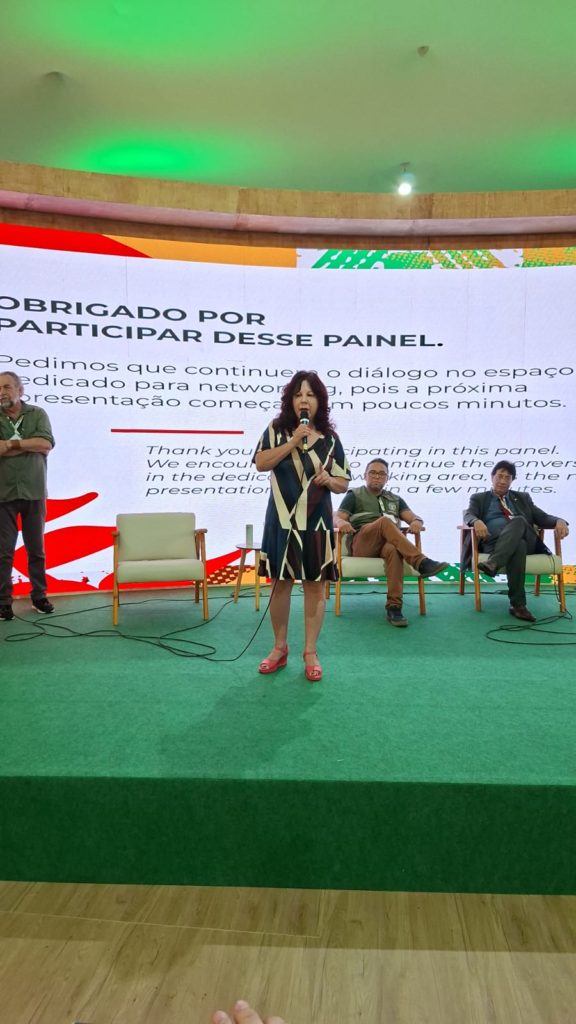 A primeira participação ocorreu nesta última sexta-feira (14), no Prédio da Economia Criativa, na Zona Verde da COP30, durante o painel “Mulheres pelo Clima e Biodiversidade: Nossas vozes pela Justiça Climática”, promovido pelo Ministério do Meio Ambiente e do Clima e pela Associação Nacional de Municípios e Meio Ambiente (Anamma). O encontro reuniu lideranças femininas de todo o país para trocar experiências, ampliar redes de ação e promover a justiça climática sob a perspectiva das mulheres.