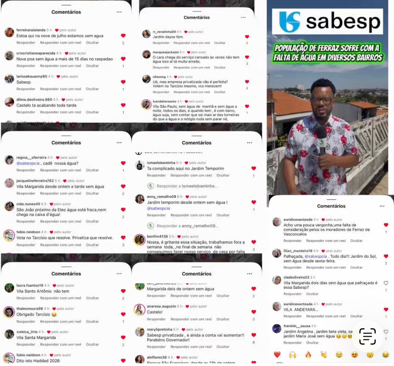 Após a veiculação das denúncias, a Sabesp informou que o abastecimento seria restabelecido. No entanto, segundo novos relatos recebidos pela reportagem, a situação continua crítica, sem normalização efetiva do serviço.