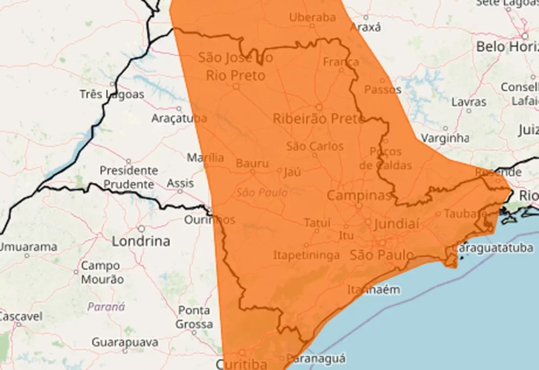 O aviso do Inmet inclui diversas áreas do estado de São Paulo, entre elas: