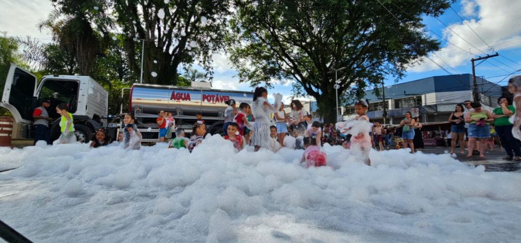 O evento conta com brinquedos infláveis para as crianças, caminhão-pipa com água e sabão para animar o público, além de uma programação musical que garante o clima festivo ao longo do dia.