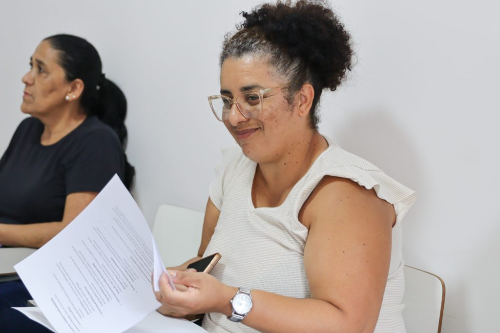 Durante a palestra, foi distribuído aos participantes um material informativo contendo os principais tópicos abordados no encontro. O conteúdo serviu como apoio para acompanhar a apresentação e como guia para que os moradores levem para casa e tenham acesso a mais informações sobre seus direitos enquanto consumidores.