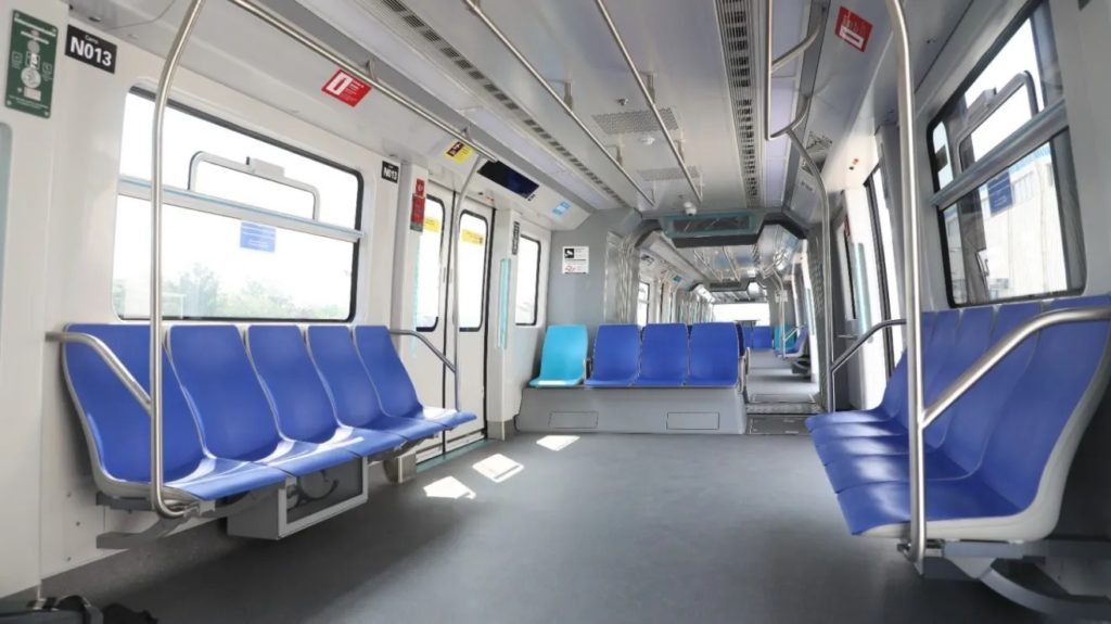 As composições da linha foram produzidas pela BYD e contam com cinco carros interligados, equipados com ar-condicionado, iluminação em LED, câmeras de segurança e sistemas de comunicação audiovisual.
