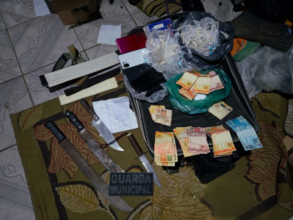 Durante a operação, denúncias da população levaram as equipes até a comunidade Macieiras, na região do Jardim Caiuby, onde foi localizada uma casa-bomba utilizada para o recolhimento do tráfico. No imóvel, os agentes apreenderam 111 pedras de crack, 22 de cocaína e R$ 800 em dinheiro, além de papéis com anotações da contabilidade do tráfico.
