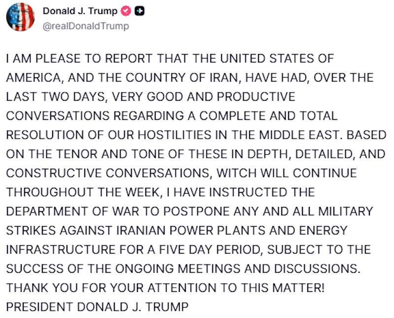 A decisão prevê uma pausa de cinco dias nas operações militares planejadas, com o objetivo de permitir o avanço de negociações diplomáticas. Segundo Trump, houve conversas “muito boas e produtivas” com autoridades iranianas, sinalizando a possibilidade de uma resolução completa das hostilidades na região.