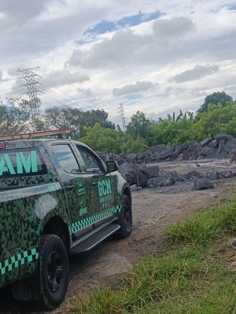 A Guarda Civil Municipal (GCM) Ambiental de Poá flagrou, na manhã da última quarta-feira (8), o descarte irregular de materiais com características de possíveis rejeitos de mineração e compostos químicos em uma Área de Preservação Permanente (APP) do rio Guaió, localizada na rua Dona Guaraciaba, em Calmon Viana. Três indivíduos que atuavam no local, bem como o proprietário da empresa responsável pela atividade, foram encaminhados à delegacia.Durante patrulhamento preventivo e ostensivo pela região, a equipe ouviu barulhos de trituração de cascalhos e pedregulhos e entrou em um terreno baldio com construções abandonadas, onde anteriormente funcionava uma empresa. No local, os agentes flagraram uma grande quantidade de materiais, aparentemente relacionados à extração de alumínio e prata, sendo descartados diretamente na área de preservação ambiental.